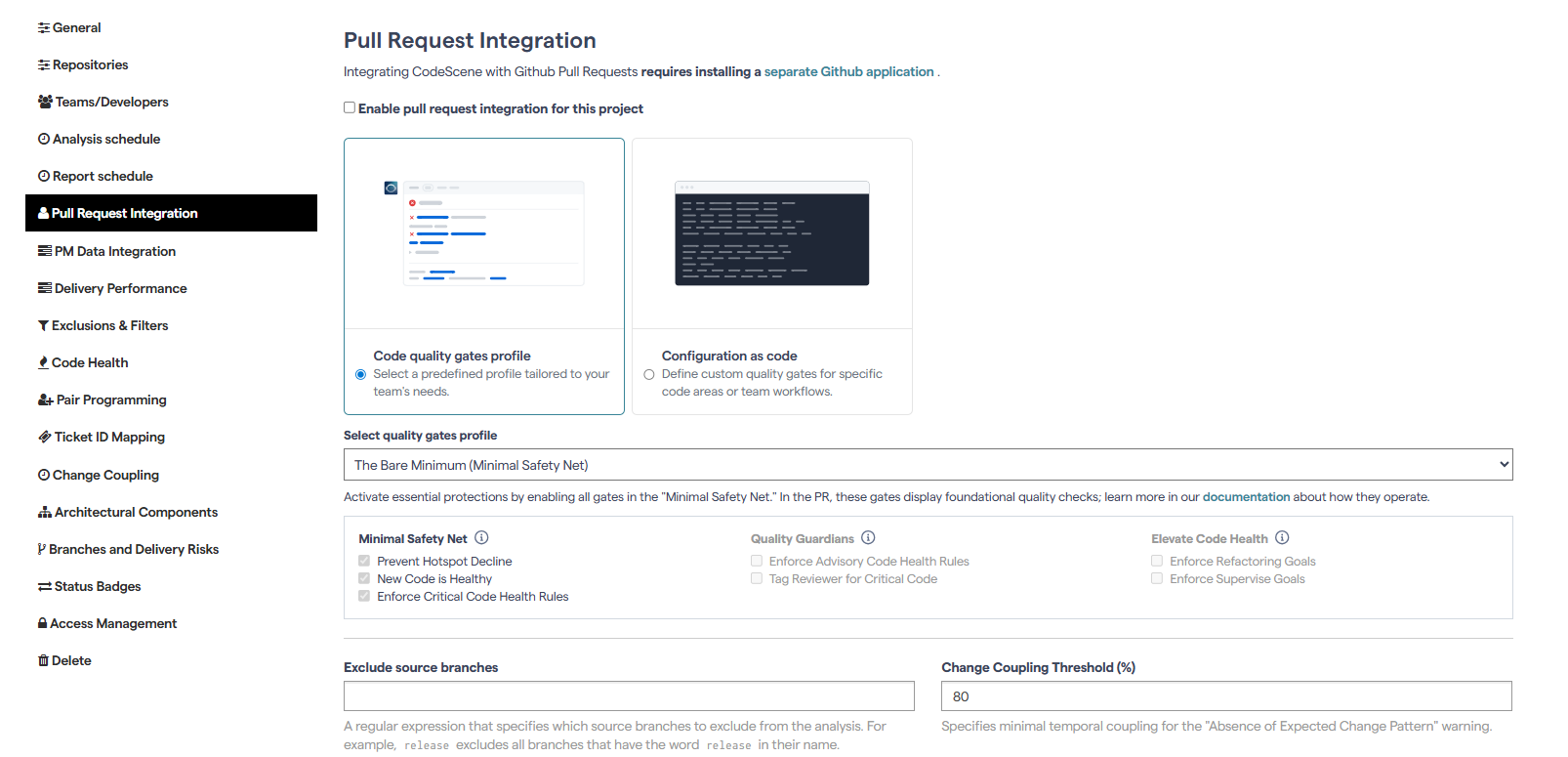 You can explore other settings to customize how CodeScene interacts with your pull requests.